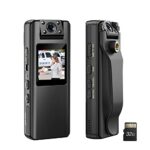 - 💙【Built-in 2200mAh Battery and 32GB TF Cards Included】 The portable body camera for daily recording could record 10 hours of the video after fully charged (in 1080P, IR Off, Screen Off). Comes with a high-quality 32GB TF card.