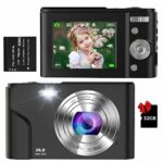 - 【36MP Digital Camera & FHD 1080P】This digital camera has 36 megapixels and supports 1080P high resolution video, and a built-in microphone can help you take clear photos or videos and capture exciting and unforgettable moments. This small camera supports memory card from 4GB to 128GB (memory card included, no need to buy separately) Please format the memory card before using this camera.,convenient for you to use this vlogging camera directly.
