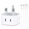 - Dual Port Charger: The dual-port charger is designed for charging iPhone and iPad and other Lightning interface devices, with a maximum output of 20W for each socket, which can provide 20W fast charging for your iPhone and iPad at the same time, with a USB C to Lightning cable The charger can be 4 times faster than the original 5W charger, charging your iphone 14 Pro up to 60% in 30 minutes. Also comes with 1m USB C to USB C cable Charge your iPad Pro up to 50% in just 60 minutes