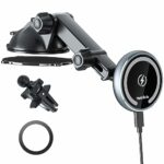 - Phone Holder Fits for Mag safe: Wireless car charger with fast charging/Mag safe function (Note: Charging for iphone 14/13/12 series are quickly , but for iphone 11 or other Android series are very slowly.),giving the driver a safe driving experience and a happy mood of relaxed driving. The extension arm solves the problem of using hands to operate the mobile phone and blocking the views when speed up. 360°adjustable give you optimal view.