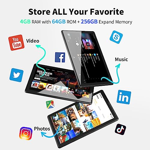 - 【High Performance 】The tablet is equipped with 4GB RAM for high speed operation and 64GB high speed storage memory. 64GB large capacity storage memory not only has higher read and write speed, but also allows the application installation, launching and loading speed to be greatly improved. This tablet also supports expandable storage space via TF card to meet your more needs.The 1.6GHz octa-core processor allows you to use all kinds of applications without any problems
