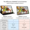 - 【FHD 1080P IPS Screen】The WIMAXIT HDR portable display offers a vivid picture and an immersive viewing experience with stunning graphics with 1920 x 1080 resolution and stunning color reproduction. This 14-inch portable touch Full HD IPS screen offers 85 ° / 85 ° (L / R ) viewing angle 85 ° / 85 ° (U / D), resolution 60 Hz, brightness 400 cd / m2; 14" IPS 98% sRGB color gamut, 309.31 x 173.99mm display area.