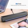 - 【VOLUM ADJUSTABLE AND BREATHING LIGHT】V-196 computer audio desktop long speaker has Volume knob on the cable can help you easily adjust the volume, the blue LED breathing light makes the speaker more exquisite.